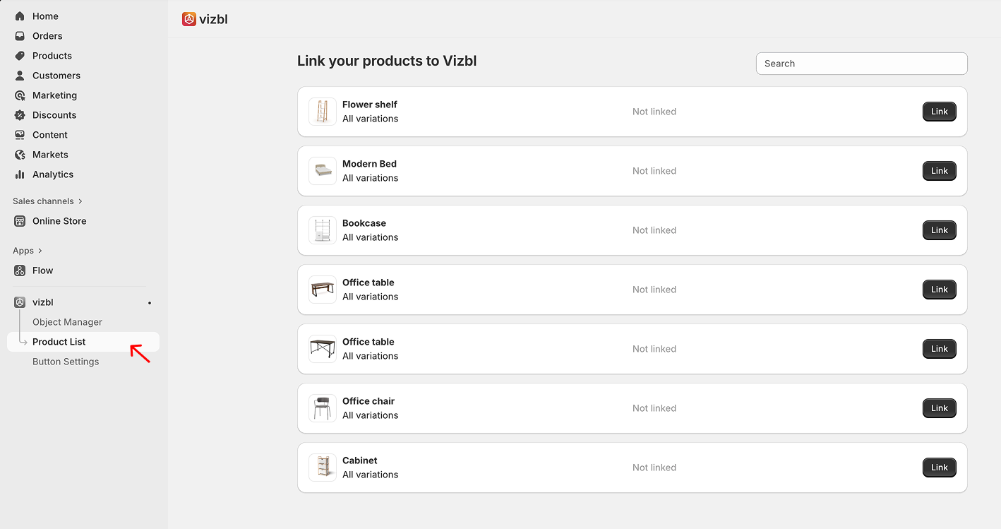 Before setting up an integration, you’ll need to connect your VIZBL 3D objects to your Shopify products.Â